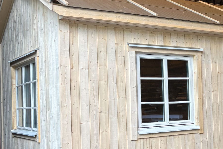 Husen levereras med plåtdetaljer runt fönster och dörrar. Vi ser till att alla fönster och dörrar installeras korrekt för att maximera fuktskydd och säkra husets långvariga hållbarhet.