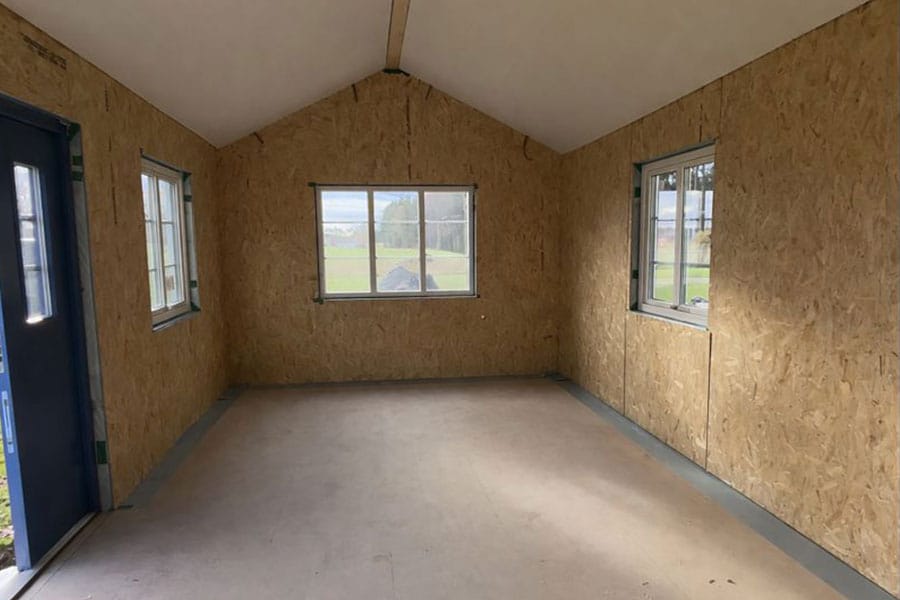 Innerväggarna är klädda med OSB väggskiva, en högkvalitativ och smidig skiva för innerväggar. Du väljer själv om de ska levereras monterade eller lösa.
